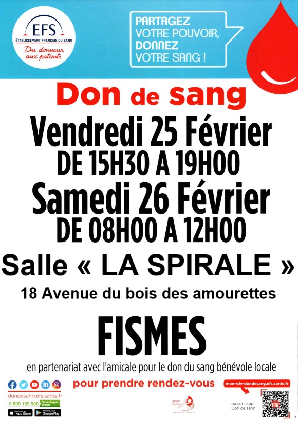 Don du sang les 25 et 26 février à Fismes Publié le 18 février 2022 par Commune de Serzy et Prin Similaire