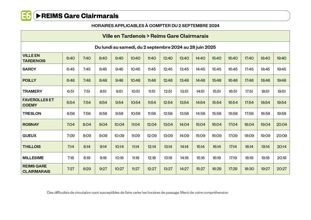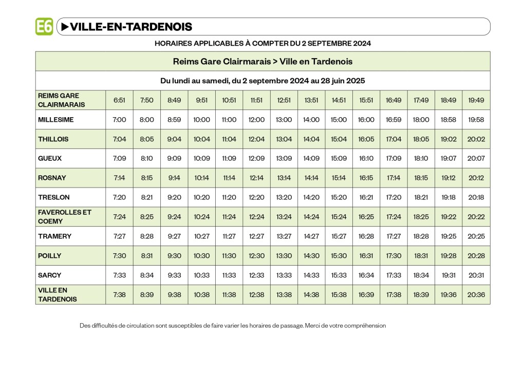 Suite à la mise en place des nouvelles lignes de Bus Express par le Grand Reims, veuillez trouver ci-dessous les horaires qui entreront en service lundi 2 septembre 2024.