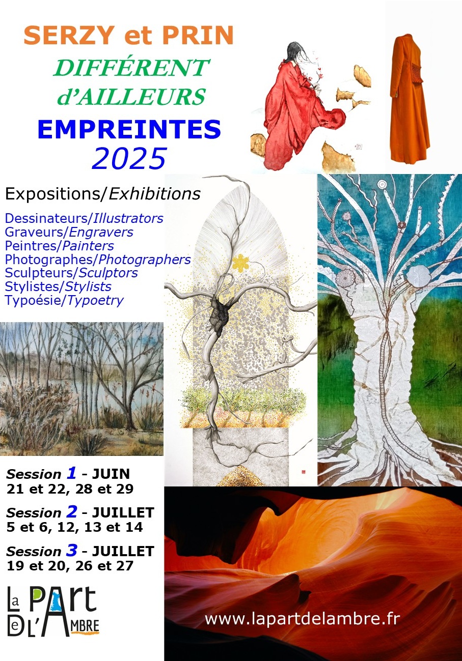 Les week-ends entre le 21 juin et le 27 juillet, l’association « La Part de l’Ambre » propose une exposition de 23 artistes à Serzy-et-Prin, écrin d’une galerie d’art éphémère pendant la période estivale. Dessinateurs, graveurs, peintres, photographes, plasticiens, sculptrices, typoésie se succéderont pour présenter leurs œuvres.